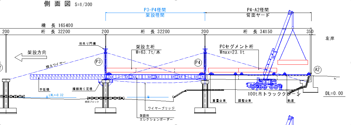 ポストテンション方式の主桁は、一般に現場付近の製作ヤードで製作され、支間長が20m~45m、主桁重量で380kN~1500kN/本程度である。