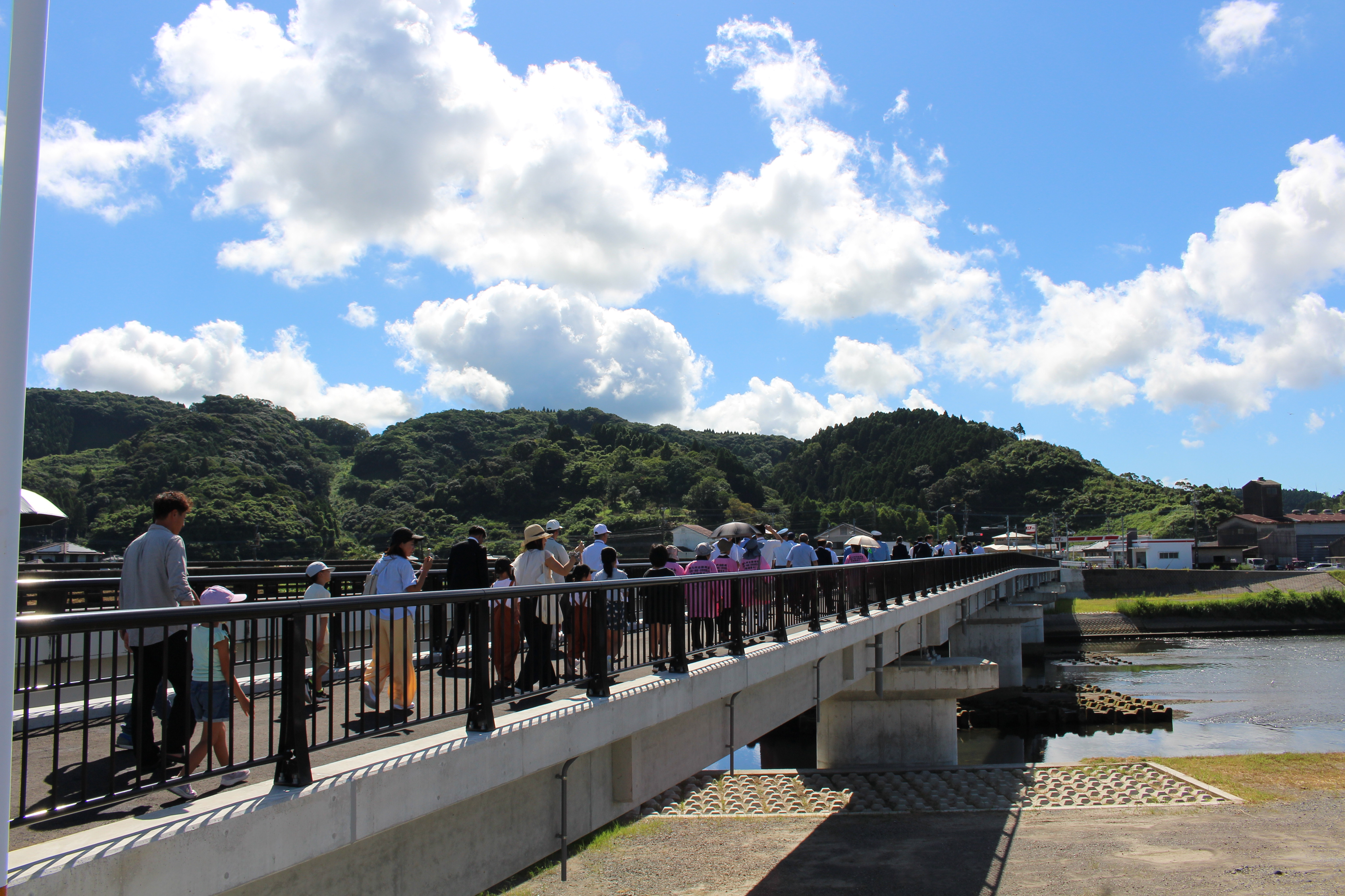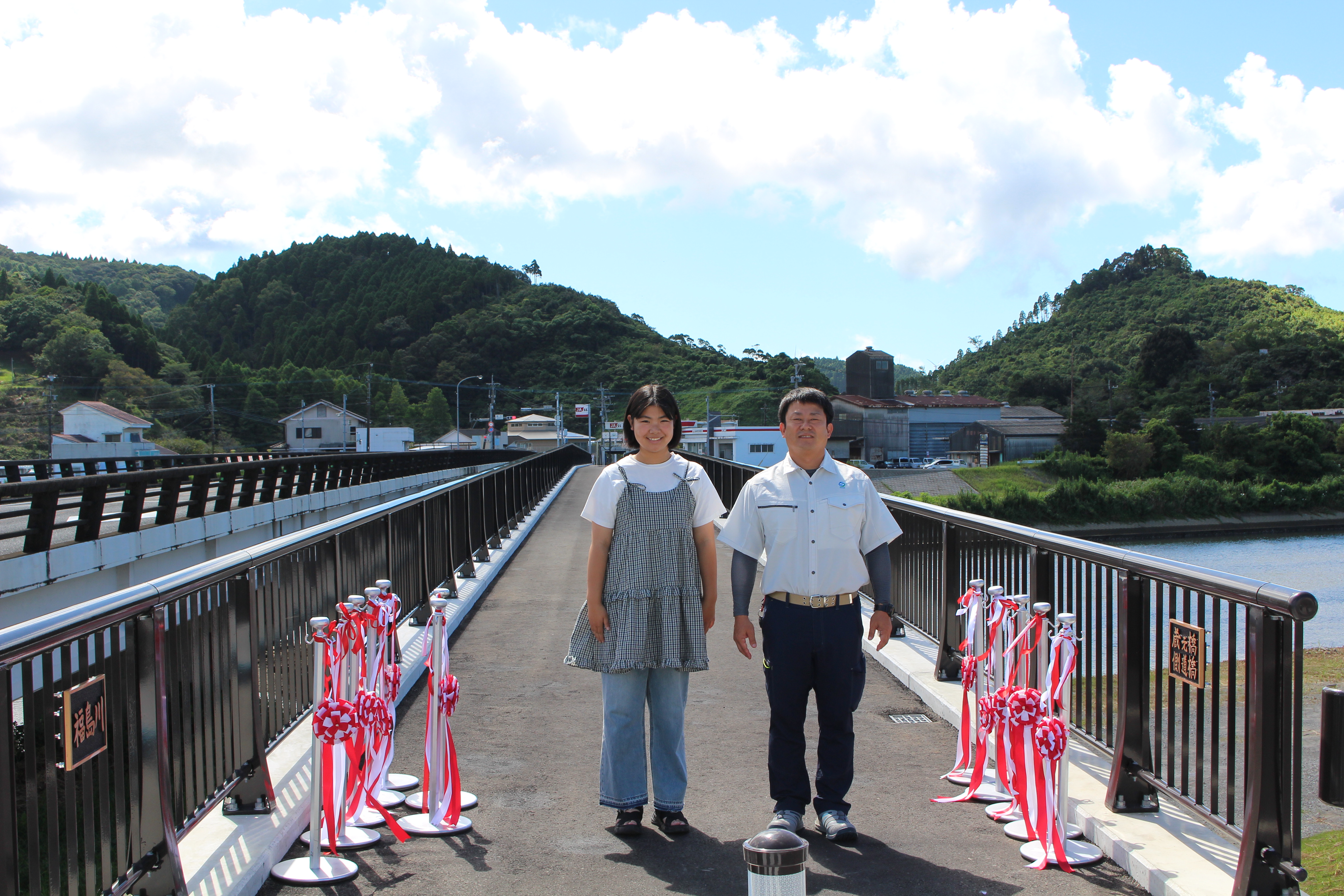 開通式当日、橋に設置された銘板と記念撮影もバッチリでした。