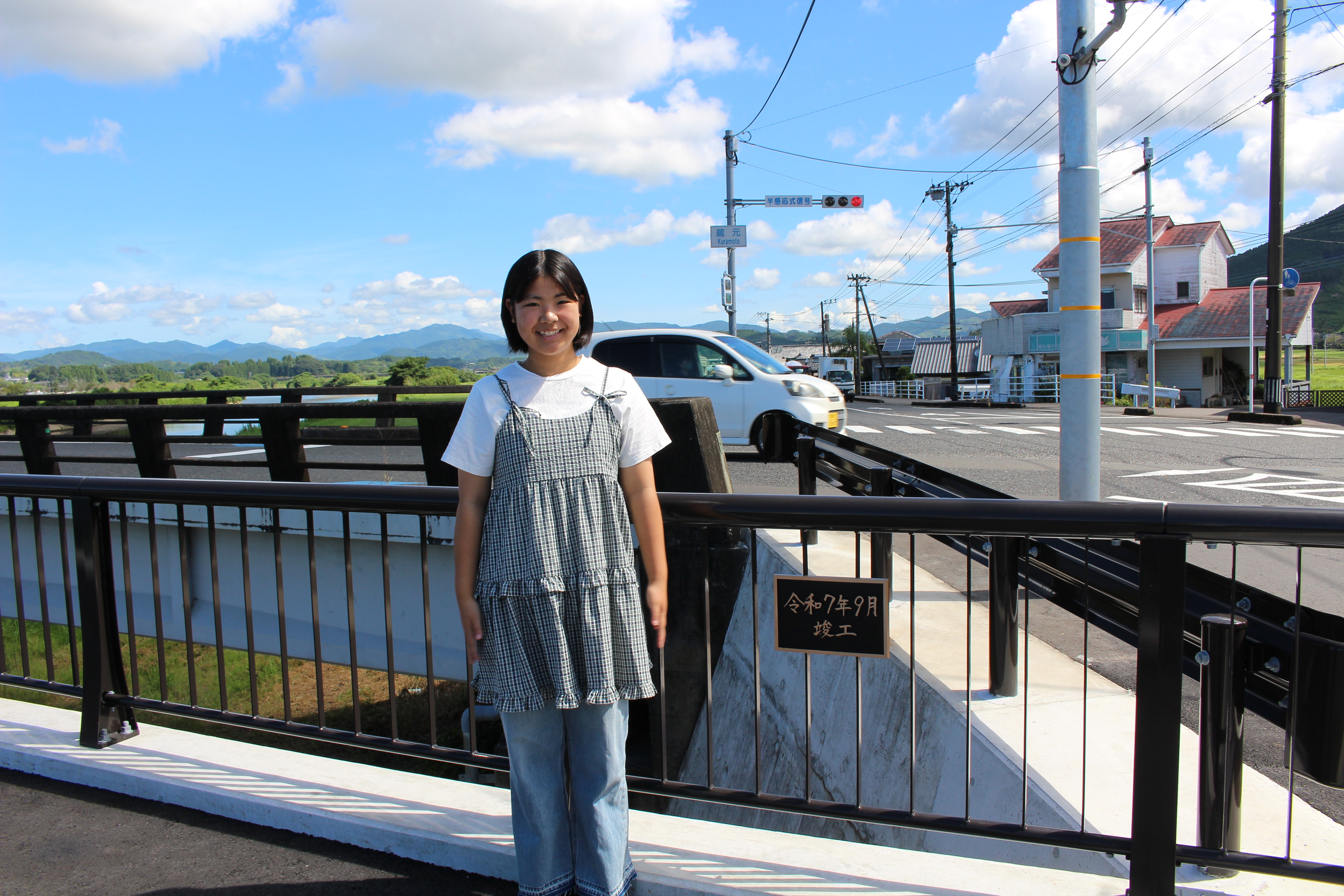 「父の働いている建設会社のお手伝いができたこと、出来上がった橋に自分の書いた字が埋め込まれているのを見たときはとてもうれしく感激しました。」