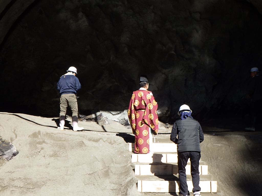 トンネルの坑口でのお清めの様子です。