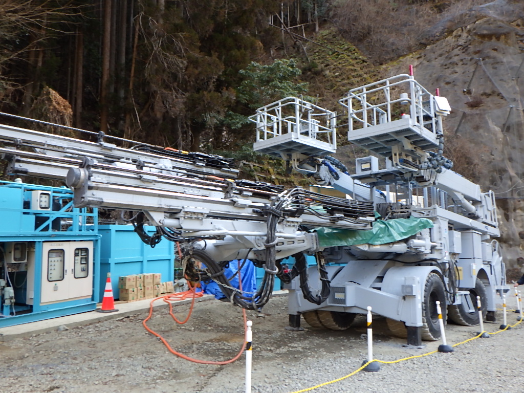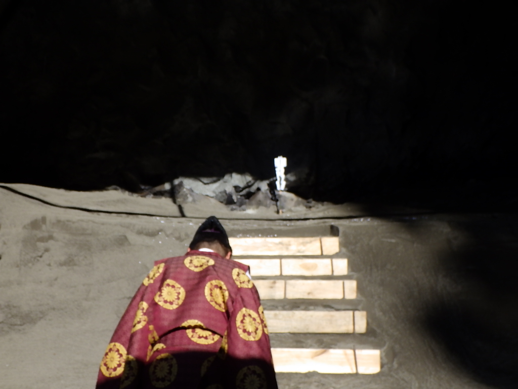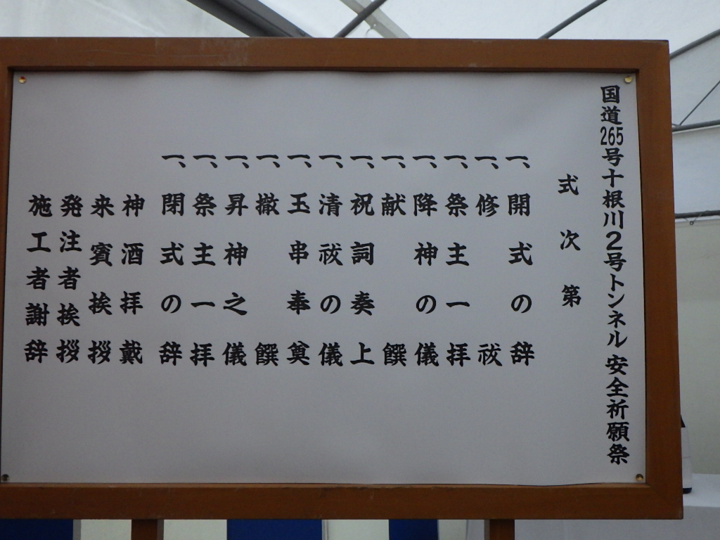 山の神様は女性と言われていて、掘り始めの入口に女性が化粧をするように飾り、山に穴を掘ることで神様を怒らせないように鎮める意味で、『化粧木』を祀りトンネル工事での安全を祈願する為に設置します。