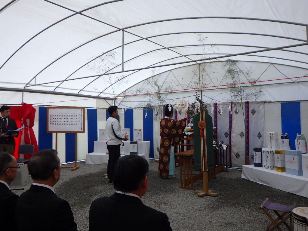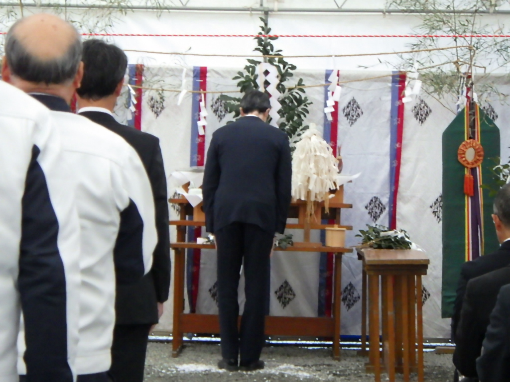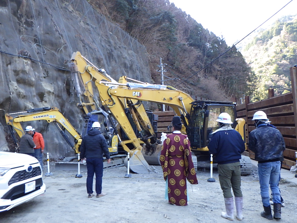 現場で使用する重機のお祓いもしていただきました。