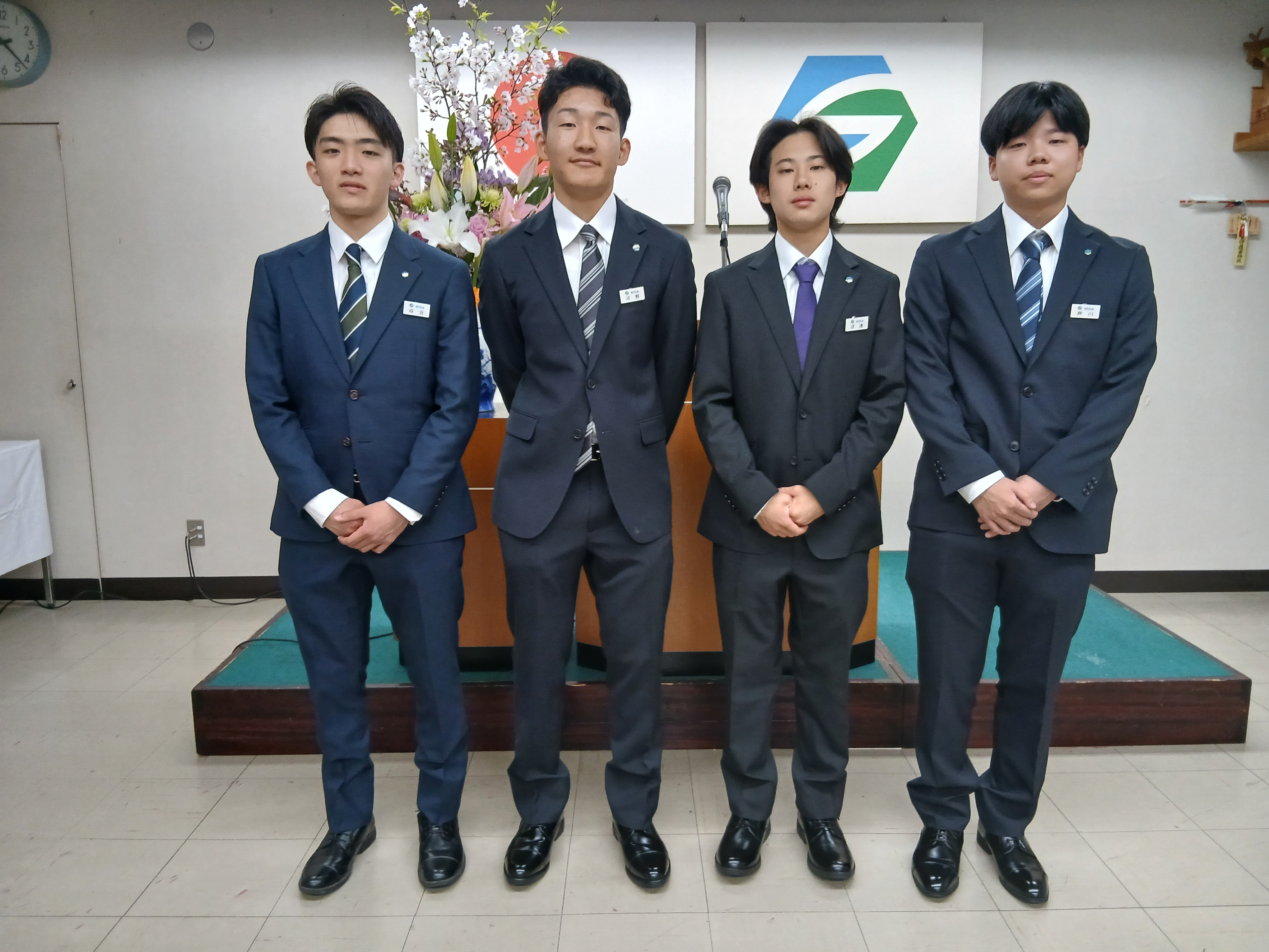 式の終了後、少し緊張がほぐれたところで、4人そろって初めての集合写真を撮影しました。