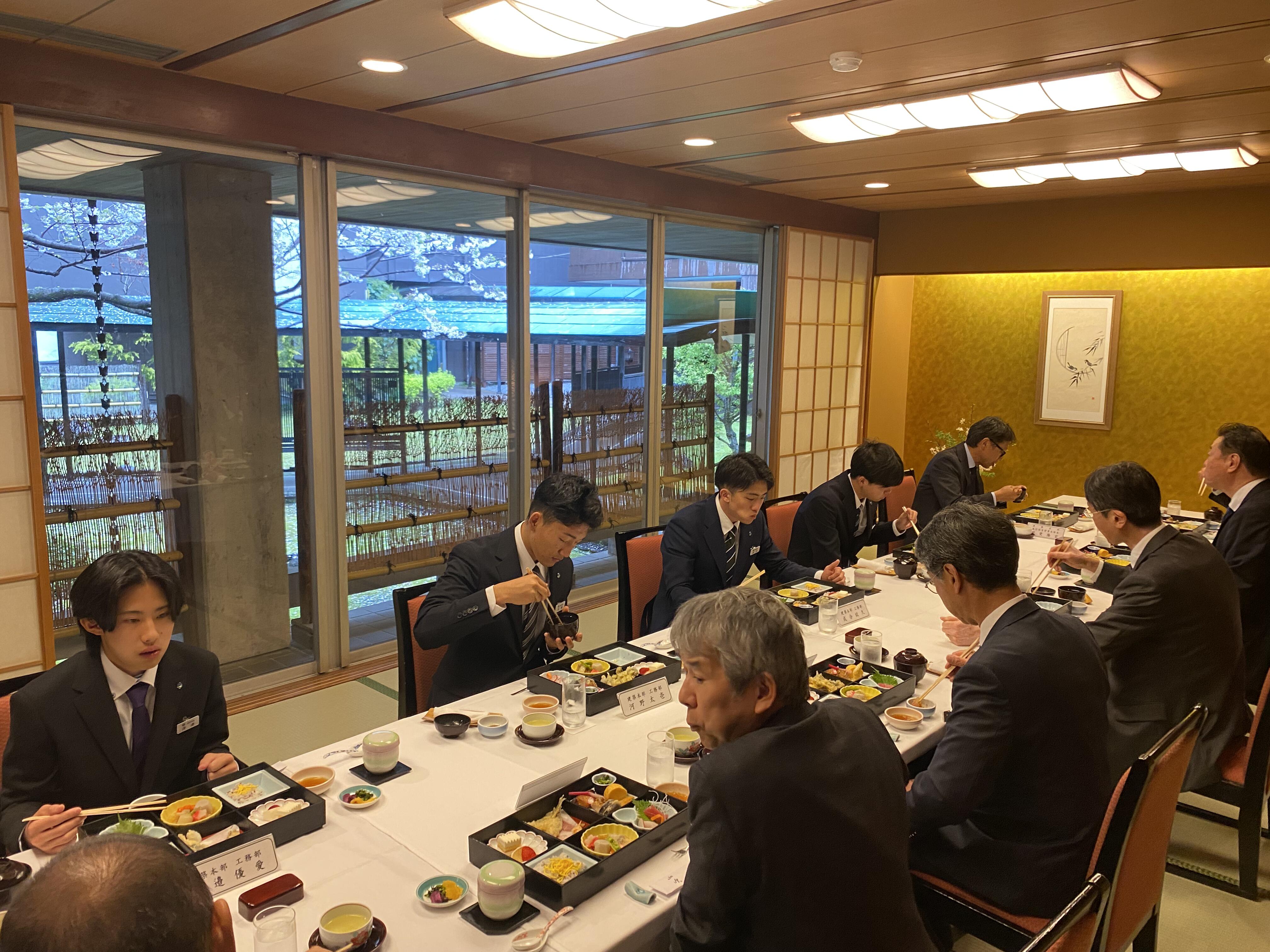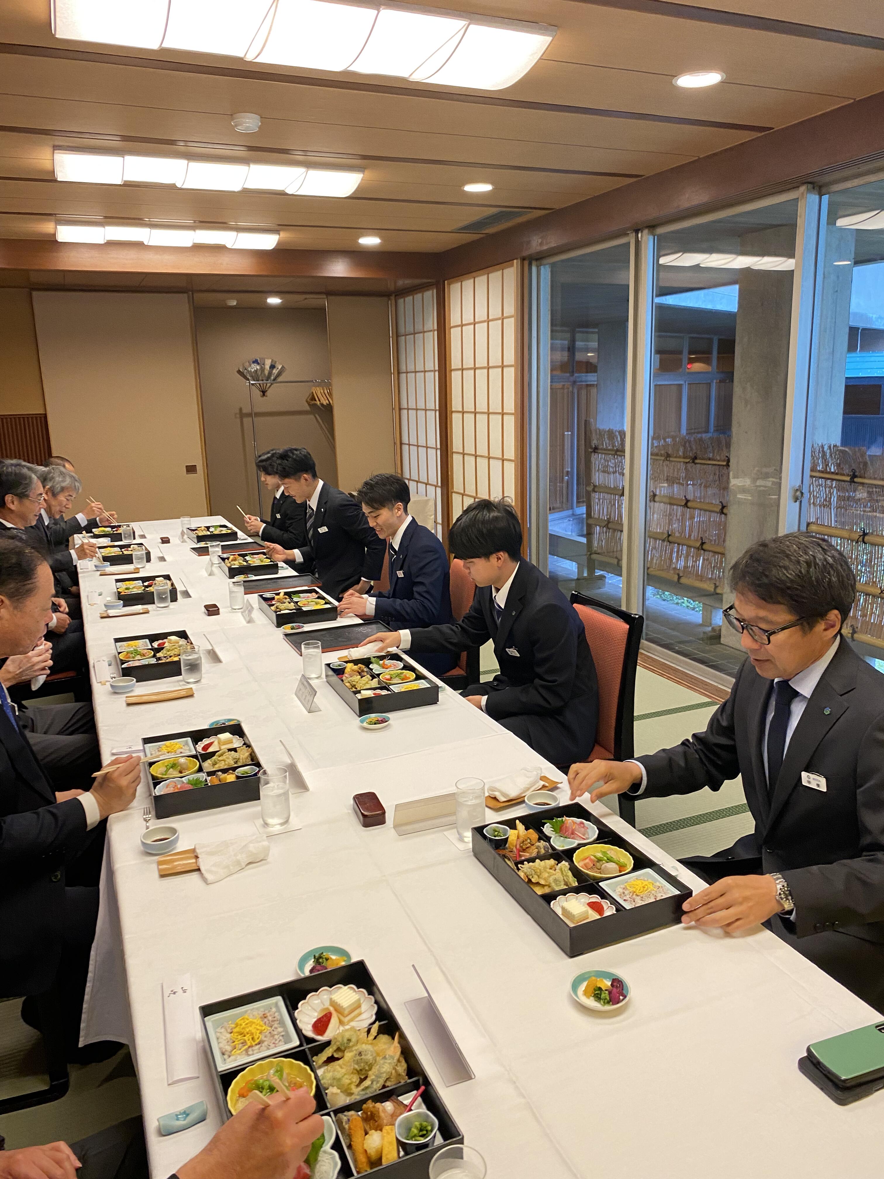 昼食は、役員とともに豪華なお弁当を囲みました。緊張しながらも、しっかりと食事を楽しめたようで良かったです。